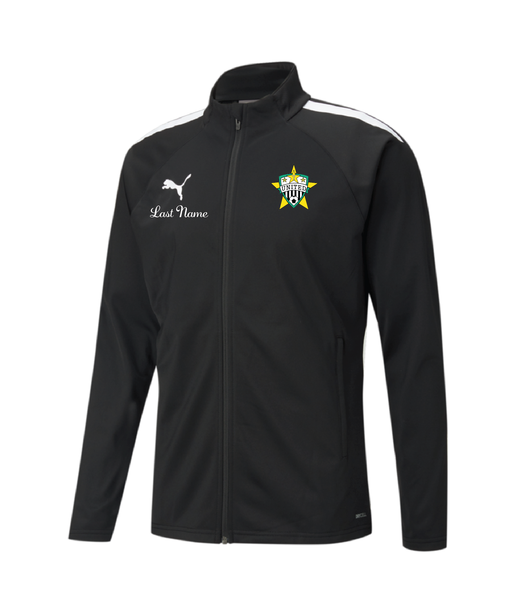 A jacket as slick as your moves: this full-zip training layer comes with athletic PUMA Formstrip branding at the shoulders and a classic stand-up collar, plus high-performance dryCELL moisture wicking and secure zip pockets for the perfect union of style and performance. The ideal match-day companion – and great for pairing with other pieces from the teamLIGA collection.